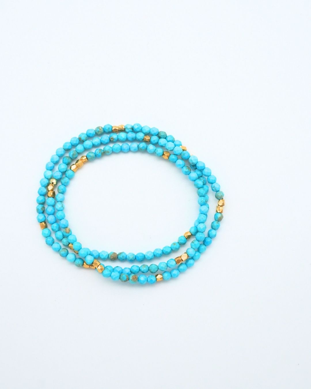 This eye-catching multi-layered Chinese turquoise bracelet features a stunning combination of delicate 2mm beads across several strands, each beautifully complemented by 14k gold micro beads. This vibrant, layered piece adds a touch of elegance and depth to any outfit. Perfect for both everyday wear and special occasions, it’s a bold yet refined accessory that brings a pop of color and sophistication to your wrist.