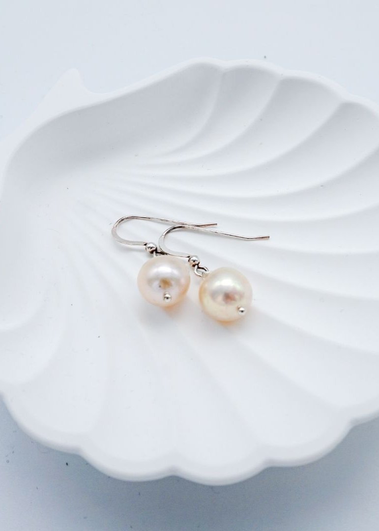 These medium Baroque pearl earrings feature naturally shaped, lustrous pearls set in sleek silver. The unique texture and iridescence of the pearls are beautifully complemented by the simplicity of the silver setting, creating an elegant and timeless piece perfect for any occasion.